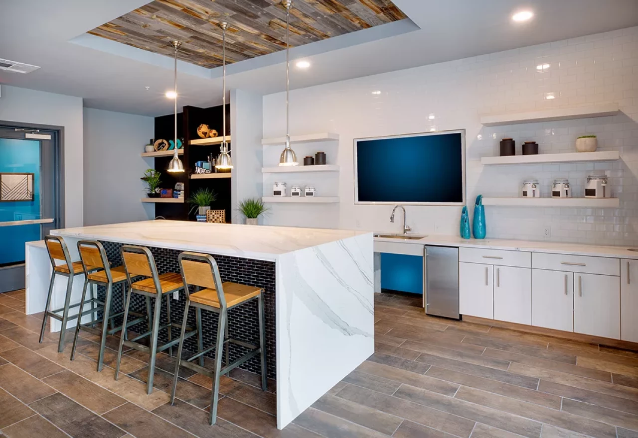 The residential second through sixth floors feature an open amenity