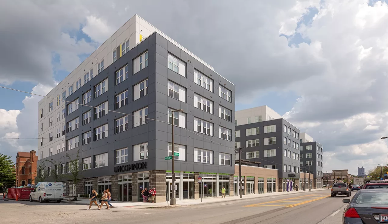 This 6-story, 254,655 SF multi-use building includes a total of 154 residential units
