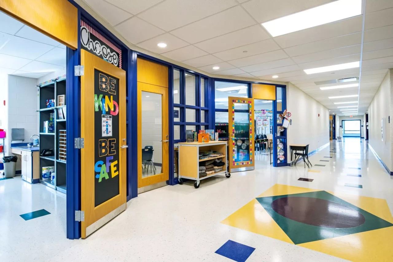 This project included a 2-story, 30,000 SF addition with 18 additional classrooms at Indian Trails Elementary School to help accommodate the District’s all-day kindergarten program. A complete redesign of the outdoor playground space at the elementary school and a new entrance canopy at Winchester Middle School were also included.