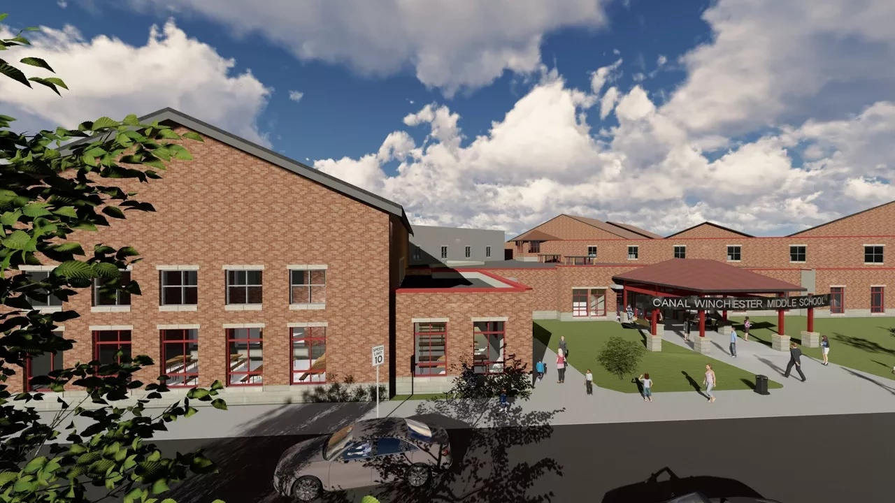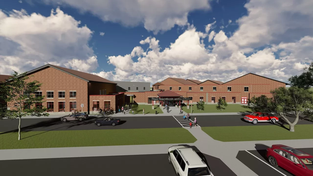 This project includes a 2-story 30,000SF kindergarten and 2nd grade classroom wing addition to Indian Trail Elementary School, including a transformational outdoors to include additional playgrounds, fire access lanes, and landscaping. The project also includes a new entrance canopy at Winchester Middle School.