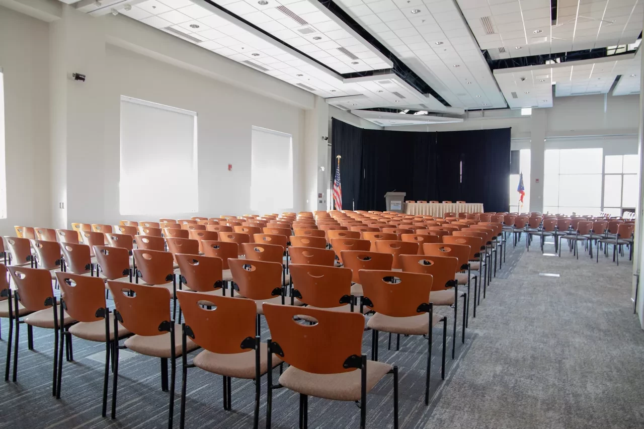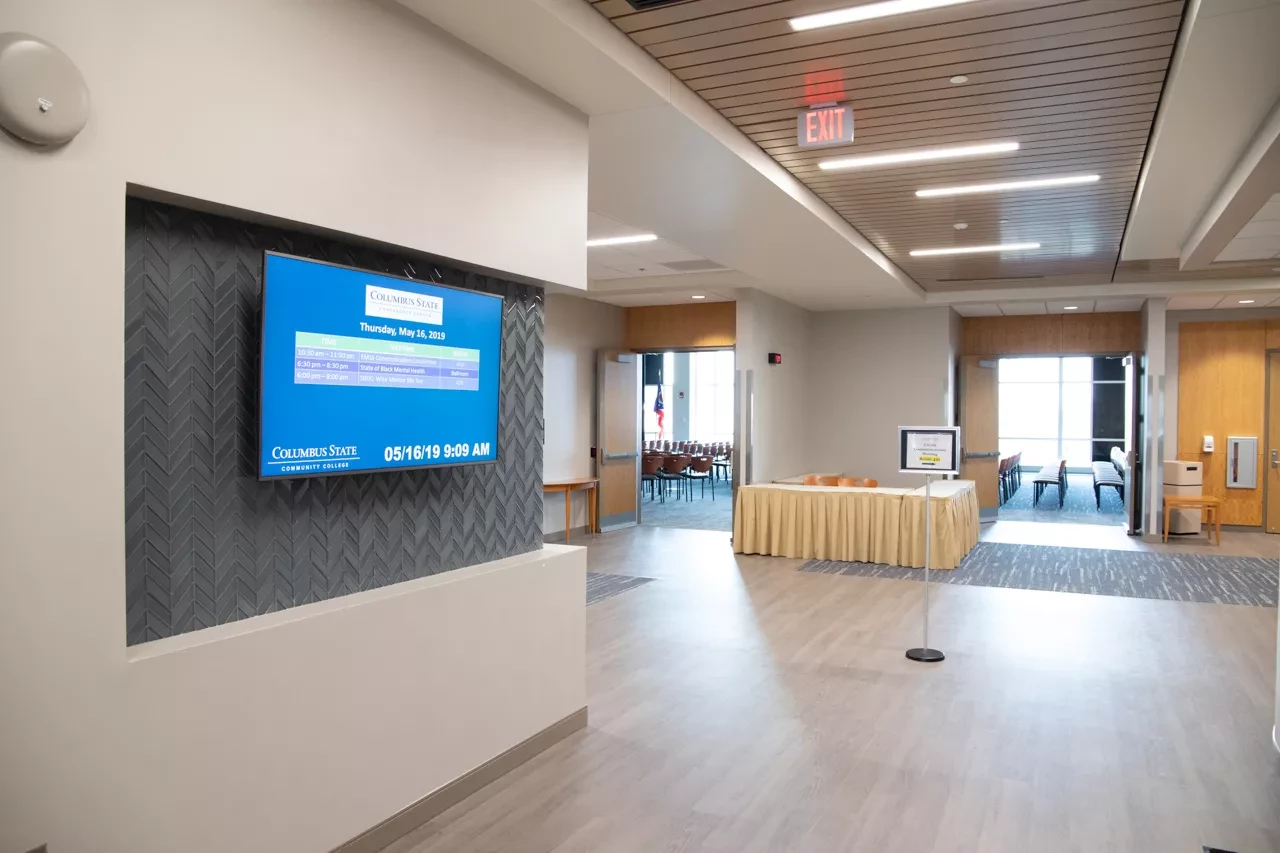 This space serves as the Columbus State Conference Center, which aspires to cultivate community partnerships by providing superior conference meeting facilities for programs, business seminars, and conferences that support and enhance the economic activity of both Columbus State Community College and the local community.
