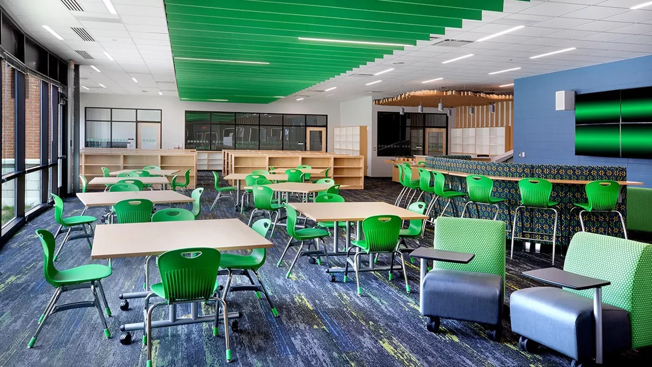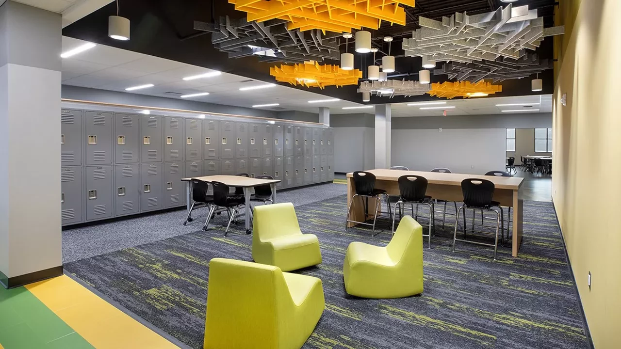 Eversole Run Middle School is just over 134,000 SF and includes over 50 classrooms, group breakout rooms, teachers’ rooms, specialty science labs, high-tech music spaces, unique dining, three courtyards, top-of-the-line athletic facilities, and a stunning gymnasium with a soaring golden eagle at center court.
