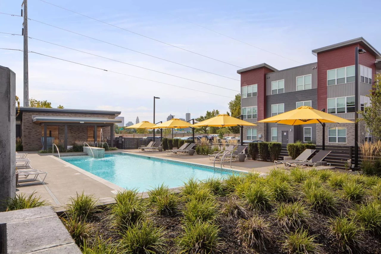 clubhouse, and on-site surface parking. Amenities include a resort-style pool, outdoor