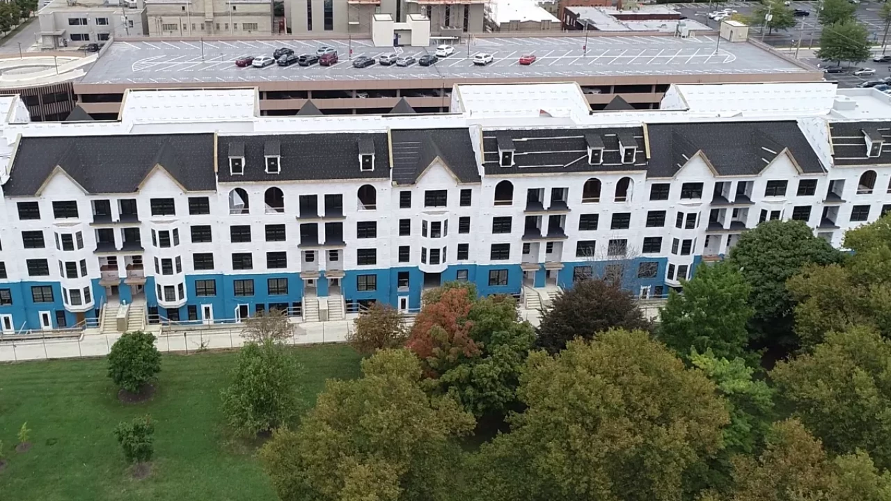 Ohio. The building features 41 two-bedroom, 9 one-bedroom, and 56 studio apartments