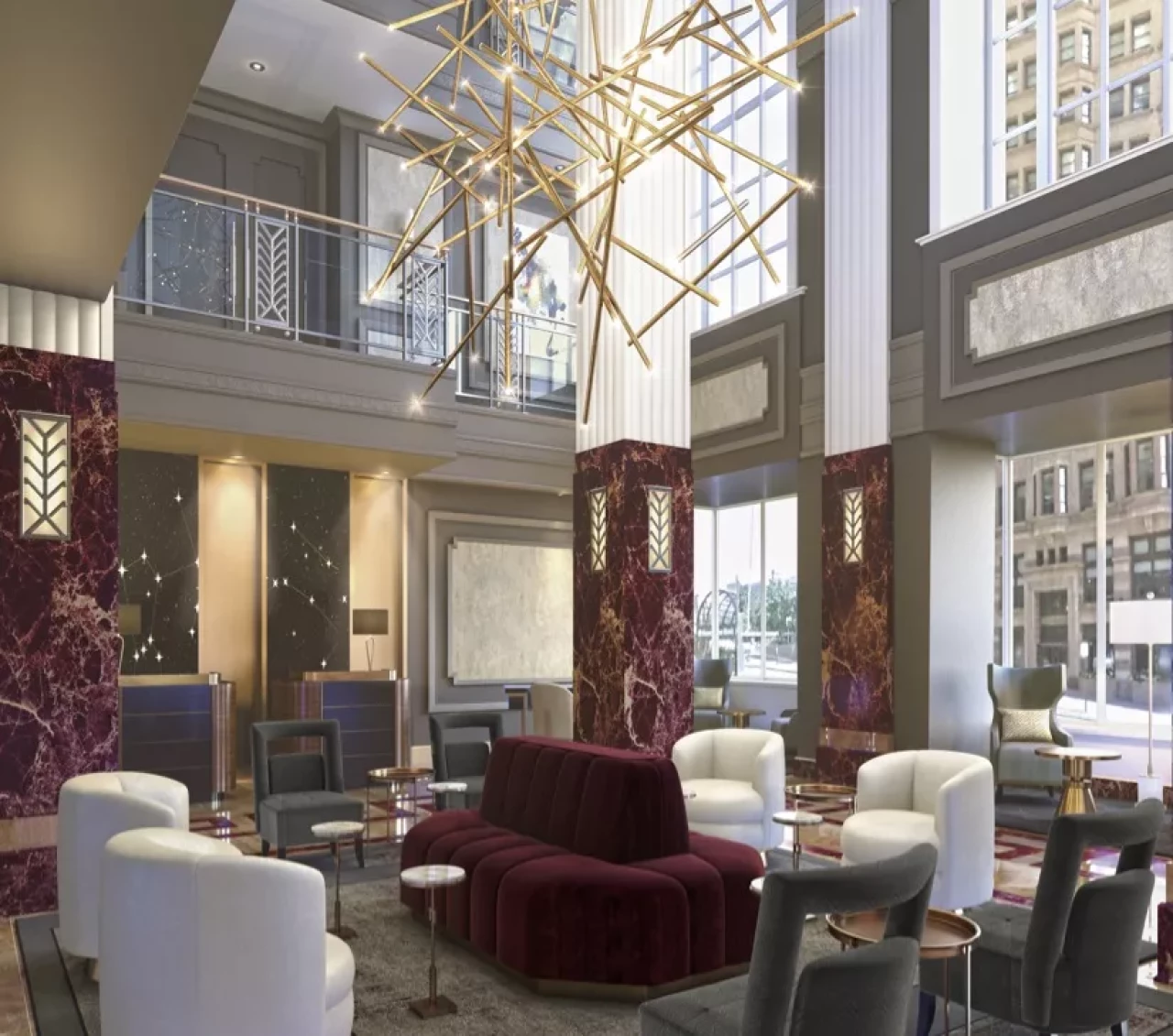 A complete renovation of all 47 floors of the 120,000 SF LeVeque Tower in Downtown Columbus to convert a variety of office spaces and apartments into high-end hotel and retail spaces. Hospitality amenities include a spa, restaurant, bar, lounge area, event space, fitness center, and Starbucks coffee shop.