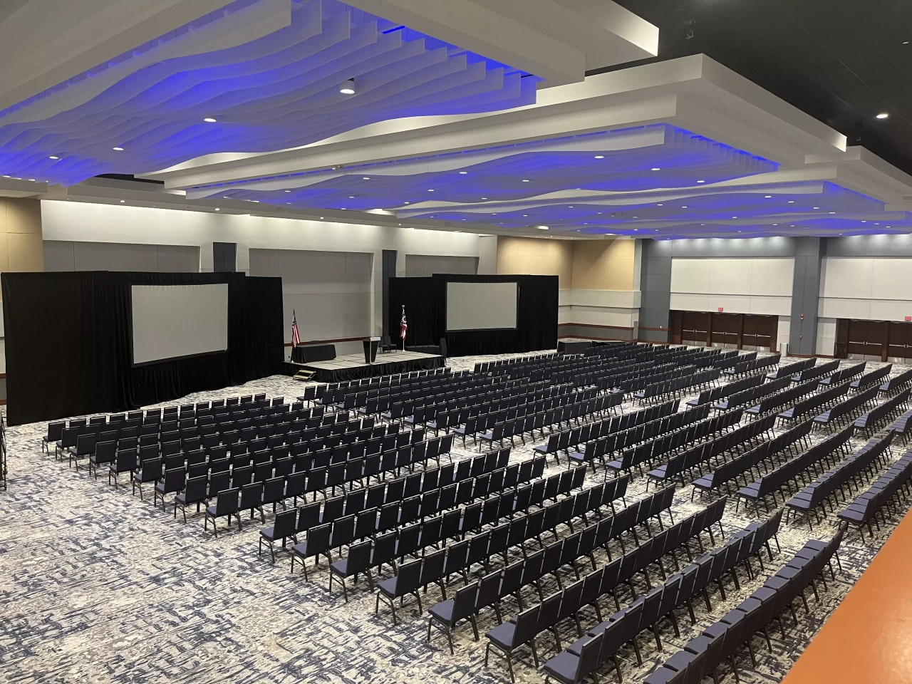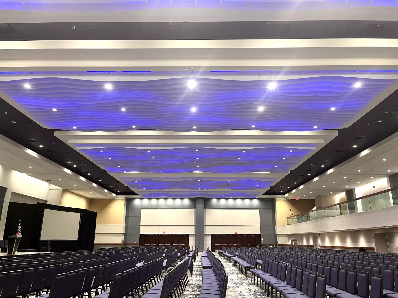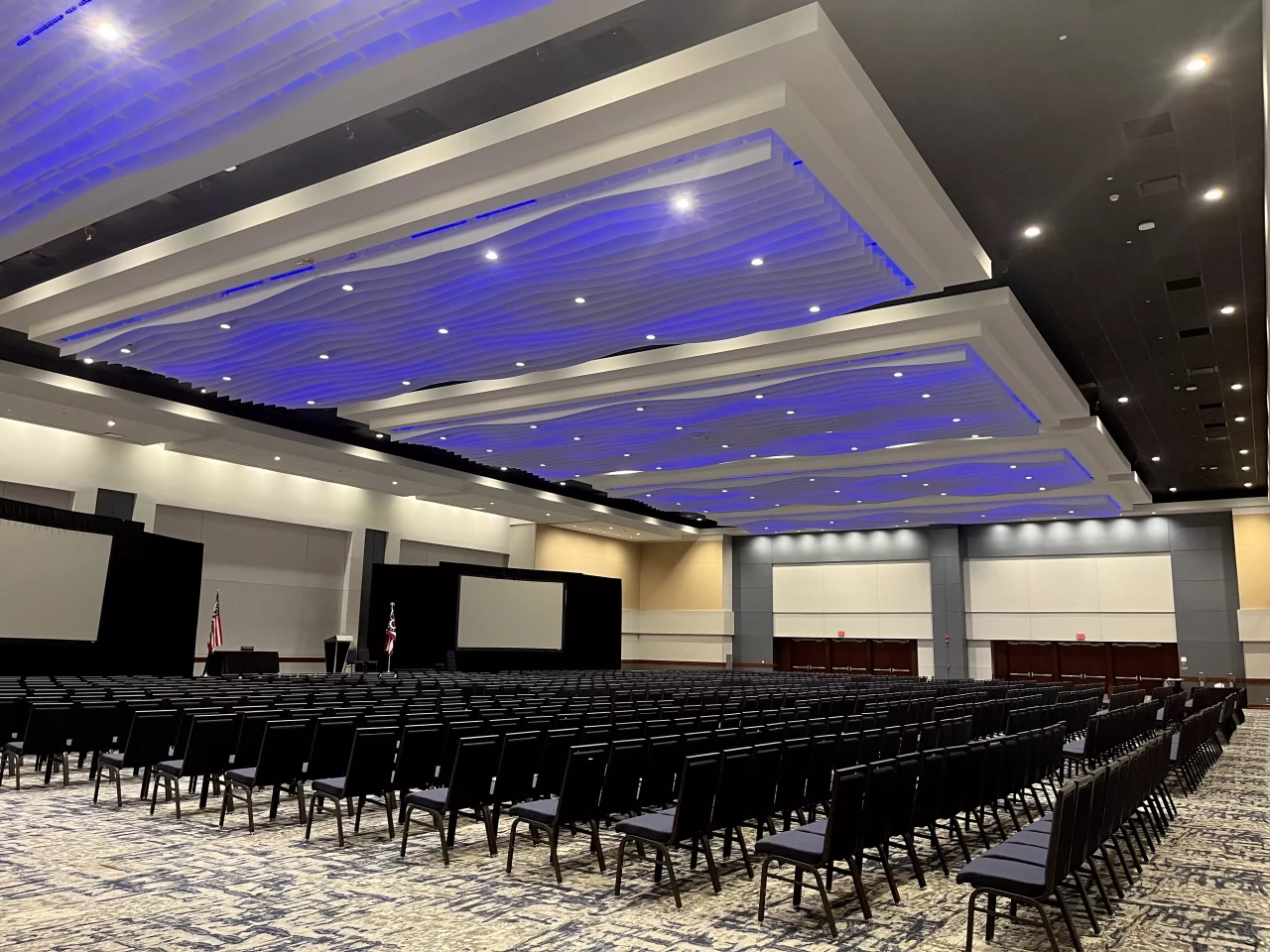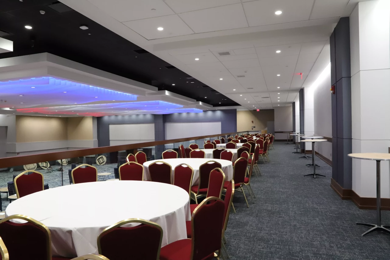 Totaling 24,766 SF, the Ballroom is comprised of a 15,780 SF ballroom floor, 2,142 SF balcony, 6,844 SF south foyer, and 2,200 SF north foyer. The Ballroom is licensed to the Hyatt Regency Hotel on a non-exclusive, priority-use basis and plays host to both GCCC and Hyatt events. The Ballroom renovation project consisted of the demolition and replacement of ceiling tiles and ceiling grid, light fixtures, diffusers, wall panel, wall covering, carpet, and doors. The Ballroom sound system was also upgraded.