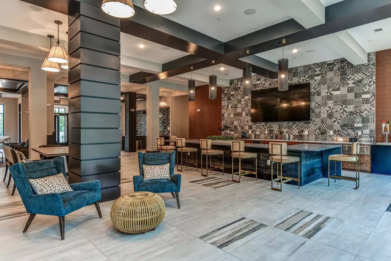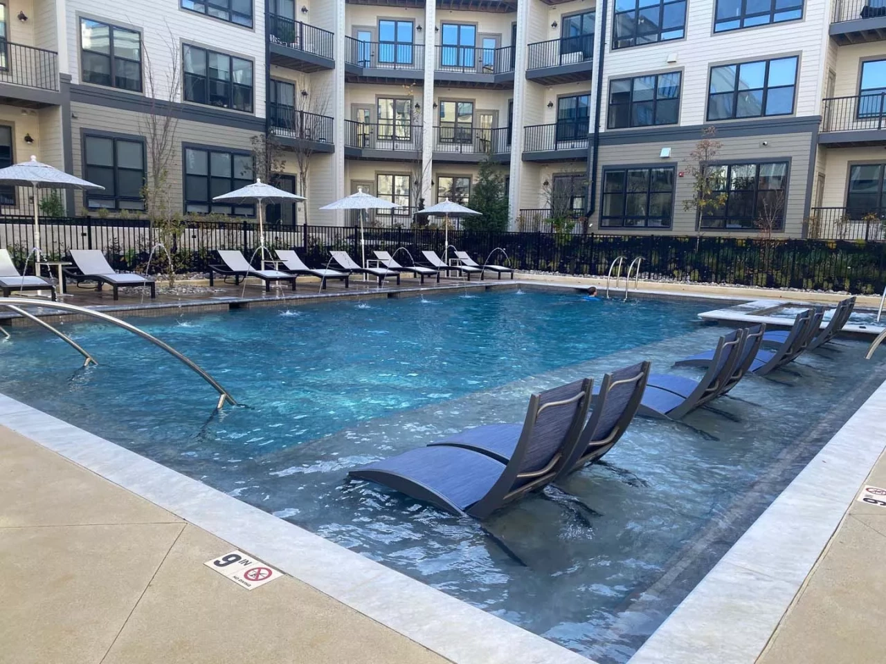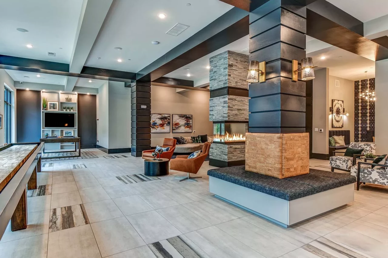 The development also features an attached 245-vehicle precast parking garage, courtyard with swimming pool, clubroom, business center, and fitness room. The property boasts over 11,000 SF of indoor amenity space and another 21,000 SF of secluded courtyard.