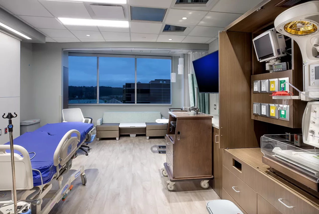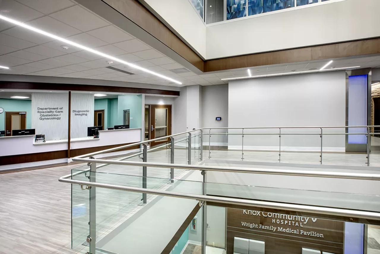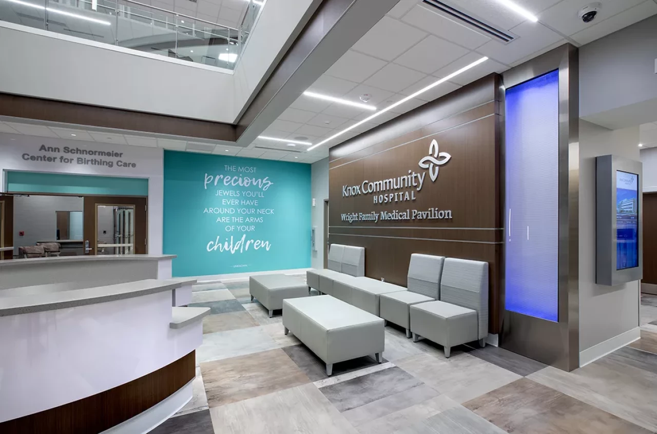 This project included the construction of a second on-campus Family Care Center, and renovations to the existing Knox Medical Pavilion (KMP) and main hospital building. The corner stone of the Project was the creation of a new family-focused Birthing Center in the Family Care Center. The project aimed to: