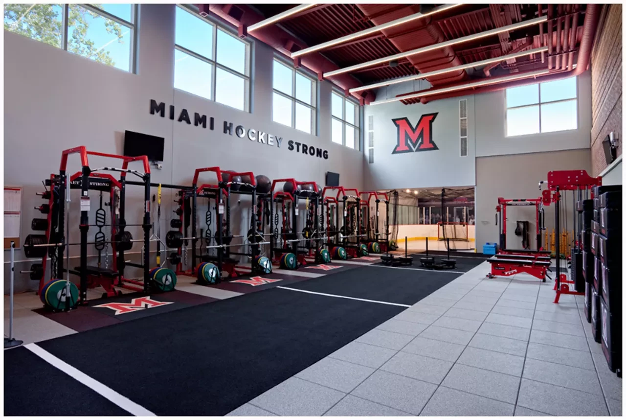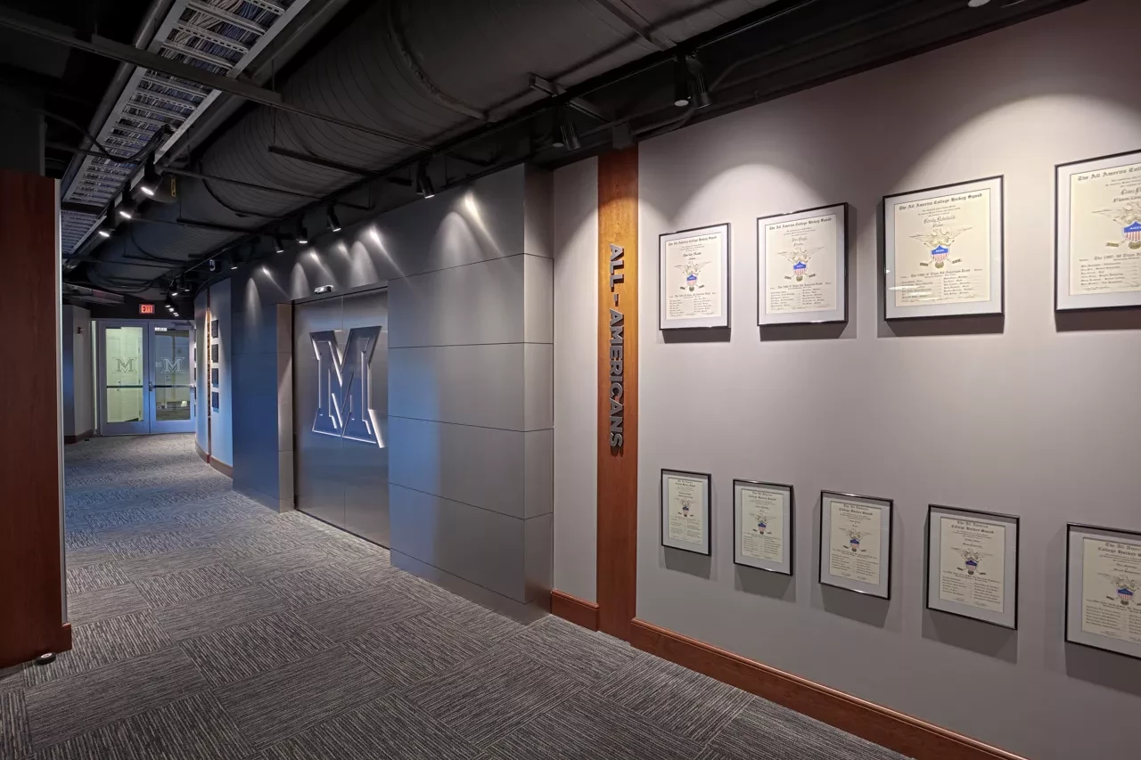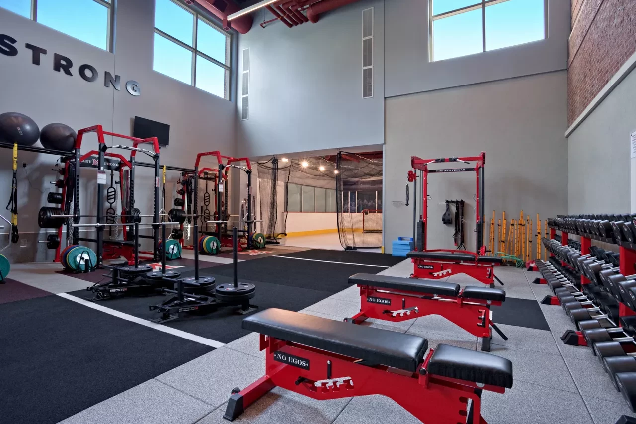 Elford provided preconstruction and construction services as the Construction Manager at Risk (CMR) for the Goggin Ice Center Hockey Performance Enhancement Addition, a 3,550 SF varsity hockey facility. Renovations included the addition of a multi-zone weight training facility, shooting room, and guest lounge on the southeast corner of the complex with the potential to include a partial second floor mezzanine over the shooting room and lounge. Also included in the project was the relocation of adjacent dry change lockers and locker room entry to enhance adjacencies and access between the addition and the existing hockey facilities along with reworking finishes between spaces to create an integrated team complex at Ice Level.