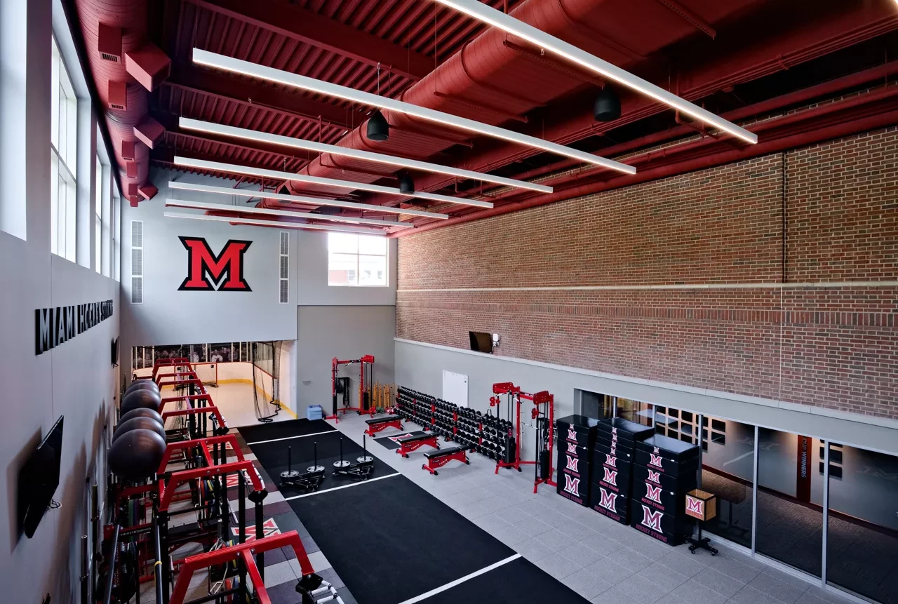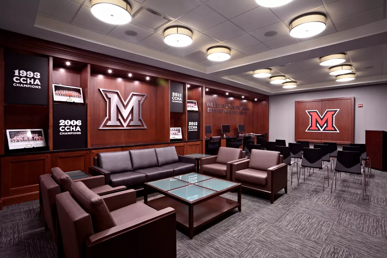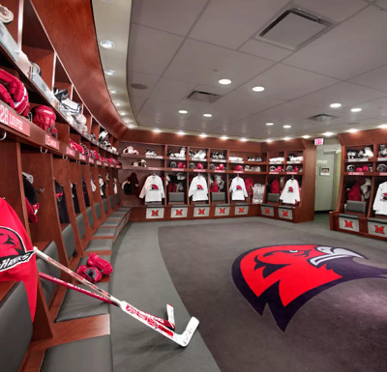 Elford provided preconstruction and construction services as the Construction Manager at Risk (CMR) for the Goggin Ice Center Hockey Performance Enhancement Addition, a 3,550 SF varsity hockey facility. Renovations included the addition of a multi-zone weight training facility, shooting room, and guest lounge on the southeast corner of the complex with the potential to include a partial second floor mezzanine over the shooting room and lounge. Also included in the project was the relocation of adjacent dry change lockers and locker room entry to enhance adjacencies and access between the addition and the existing hockey facilities along with reworking finishes between spaces to create an integrated team complex at Ice Level.