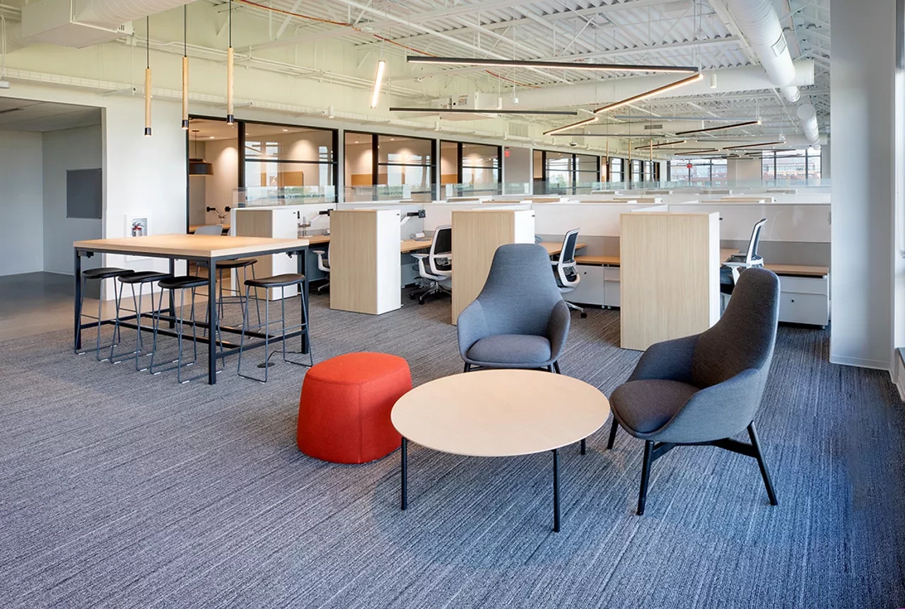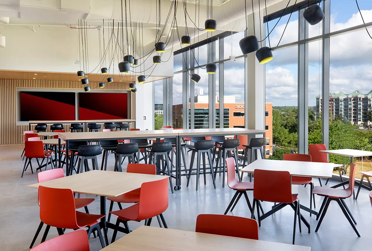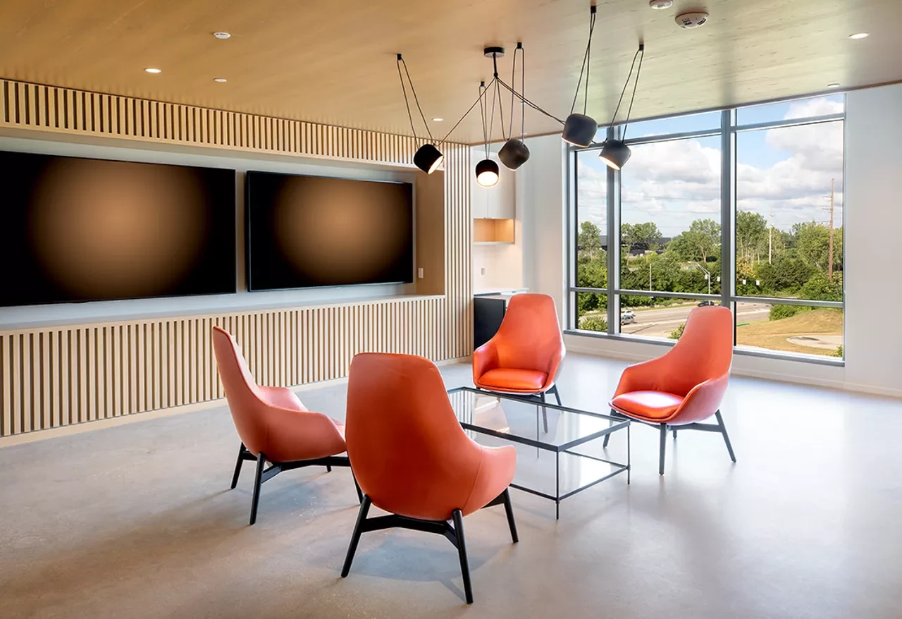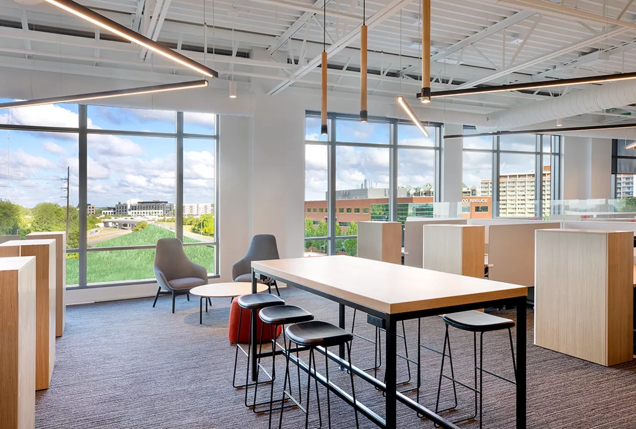 A 81,120 SF Midwest headquarters for Chipotle Mexican Grill, located in the Arena District in downtown Columbus. Interior design includes extensive use of sound-rated walls, floors, doors, and glazing. A data center is located on level 3, and additional bathrooms, cafeterias, and break rooms were outfitted on each floor to support approximately 400 employees. High-end lighting, lighting controls, and other design features were included to mimic the recently completed headquarters in Newport Beach. Elford coordinated the work of Chipotle’s security, low voltage, furniture, and AV vendors through a virtual preconstruction process due to travel limitations imposed during the COVID-19 pandemic.