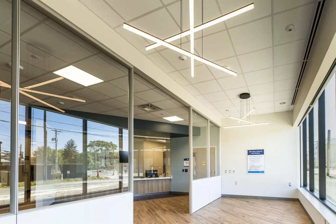 This new OhioHealth medical facility located in the Franklinton neighborhood features an Urgent Care and Primary Care practice on the first floor of Phase II of the Gravity Project near downtown Columbus. The 13,000 SF space features 24 exam rooms with point-of-care laboratory and x-ray services and was constructed utilizing an innovative modular wall approach.