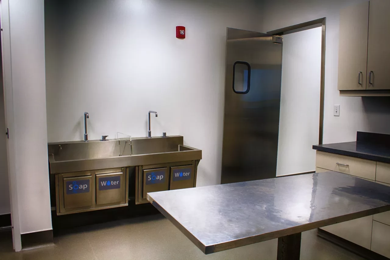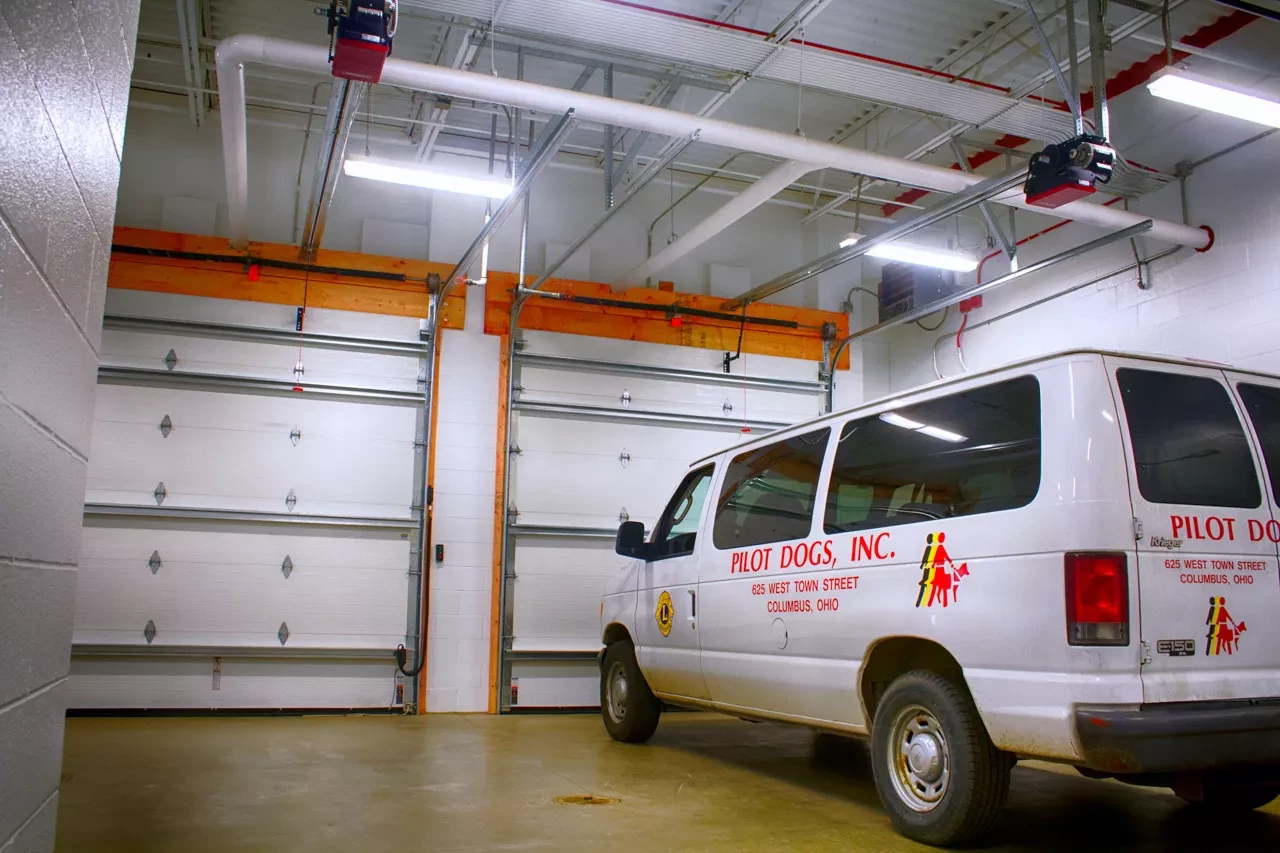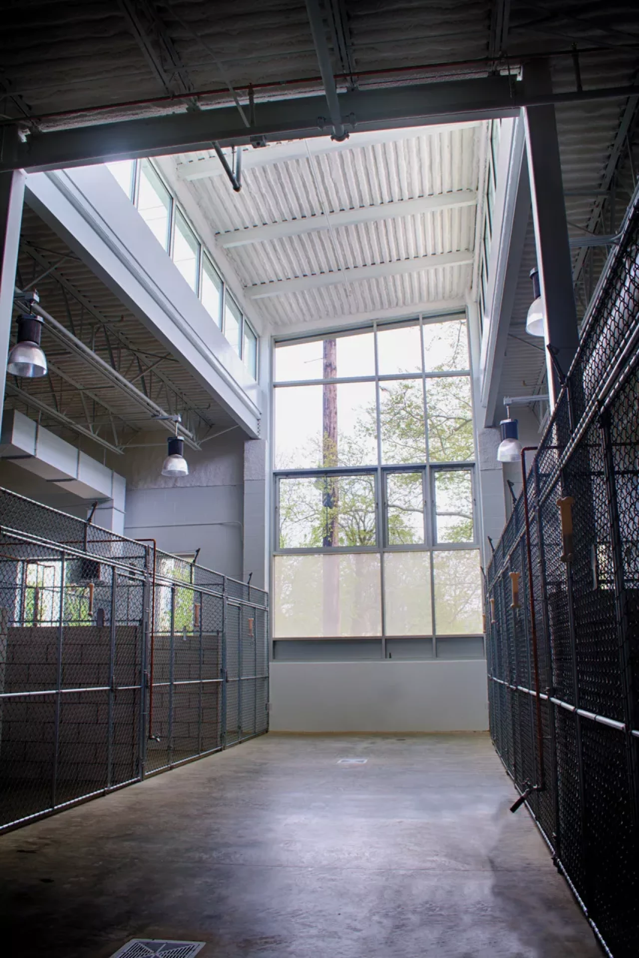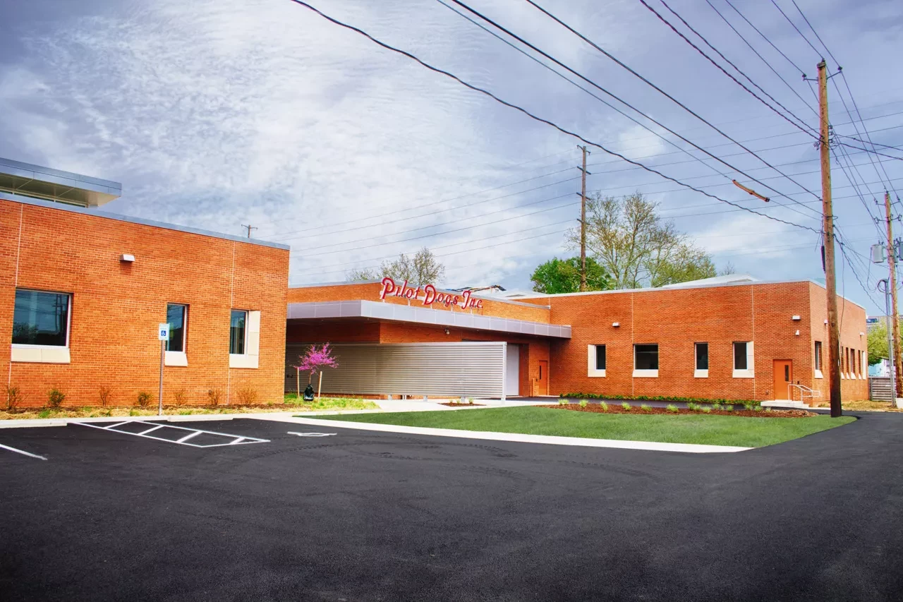 The new kennel houses 160 dogs, allowing Pilot Dogs to serve 180 blind and visually impaired individuals annually. New students coming for their first guide dog will be required to live on-site for a 28-day familiarity and training session. Those who are seeking a second or third guide dog will only stay on site for two weeks. The facility also includes a 2-bay garage for transportation, veterinary medical space and an OR facility for surgery.