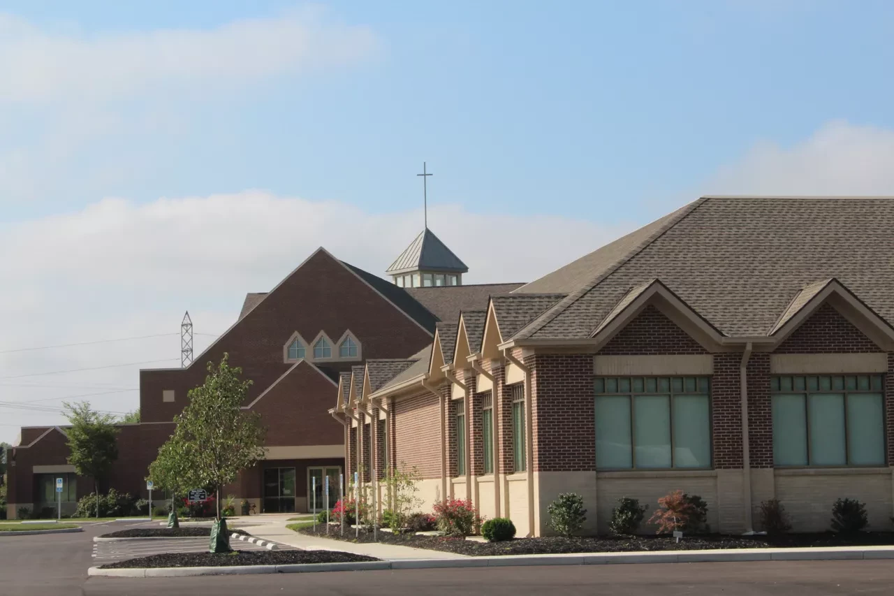 Phase 1 included the new Parish Center, which will houses a multipurpose space on the ground level, 10 classrooms for religious education and group meetings on the lower level, a new kitchen, elevator, and ancillary spaces. Phase 1 included expanding the existing parking lot by 400 spaces and adding capacity to the existing on-site septic system. Phase II included renovation of the existing parish hall to create parish offices and upgrades to 2,341 SF of the basement level including new paint, ceilings, lighting, and partition walls.