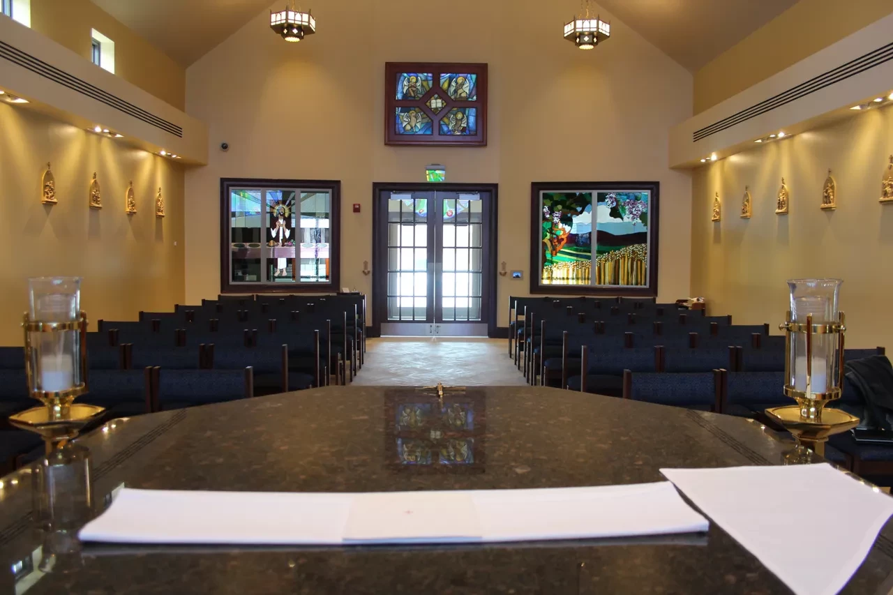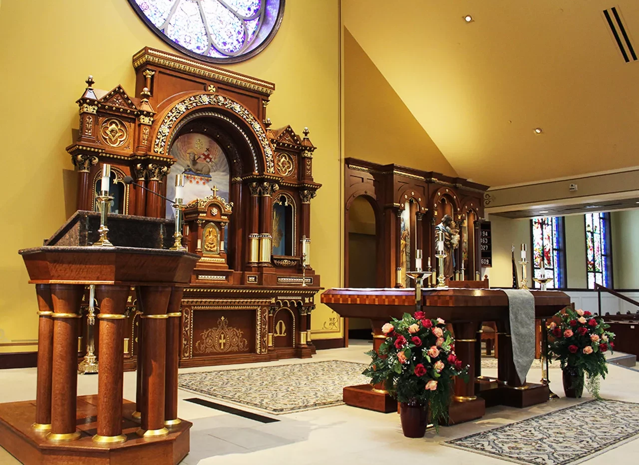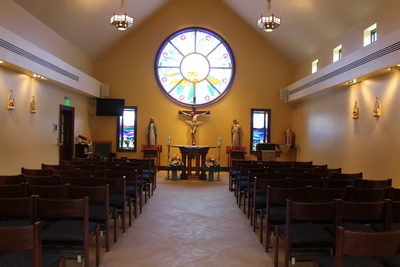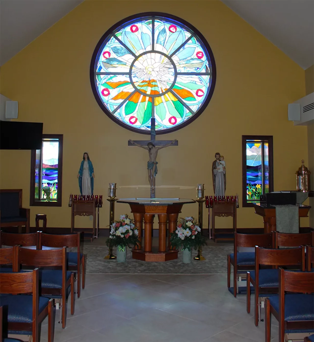 New Sanctuary The new Sanctuary seats 550 and was designed for future expansion (1,100 seats). A new connector unit between the Parish offices and Faith & Family Center was also built. Elford performed the following work: sanitary & storm system upgrades; remediation of the east parking lot; adding new St. Ladislaus windows; reconstruction and renovation of the altar of repose; tile flooring; a baptismal font; larger HVAC units; new retractable hanging lights; additional catwalks in the attic; relocation of the power transformer; installation of a back-up generator; and additional A/V equipment installation.
