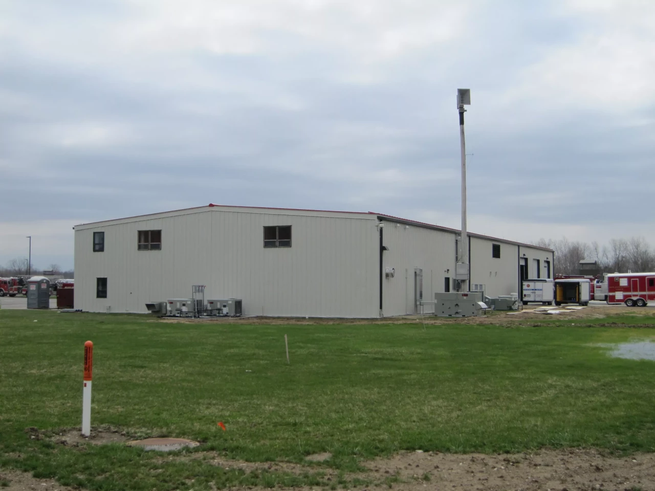 An extensive renovation of Building A, a 12,600 SF, fully-sprinklered, metal building, housing truck bays and limited areas of office, storage, meeting rooms, and classrooms. Renovations included the complete replacement of the metal roof and roof insulation along with a small metal-framed addition on the south side of the building for equipment storage. New Rooftop AFU were installed to handle air evacuation within the building and the replacement of all sliding bays door for new 18’ openings. Sitework included paving, extension of a gas line, and extension of a fire water line along a newly constructed road leading back within the campus. Remediation for mold and bird contamination occurred within the building. Construction took place on an actively used training campus for first responders, and continual use of the vehicle bays by owner required emergency egress to be maintained throughout the project.
