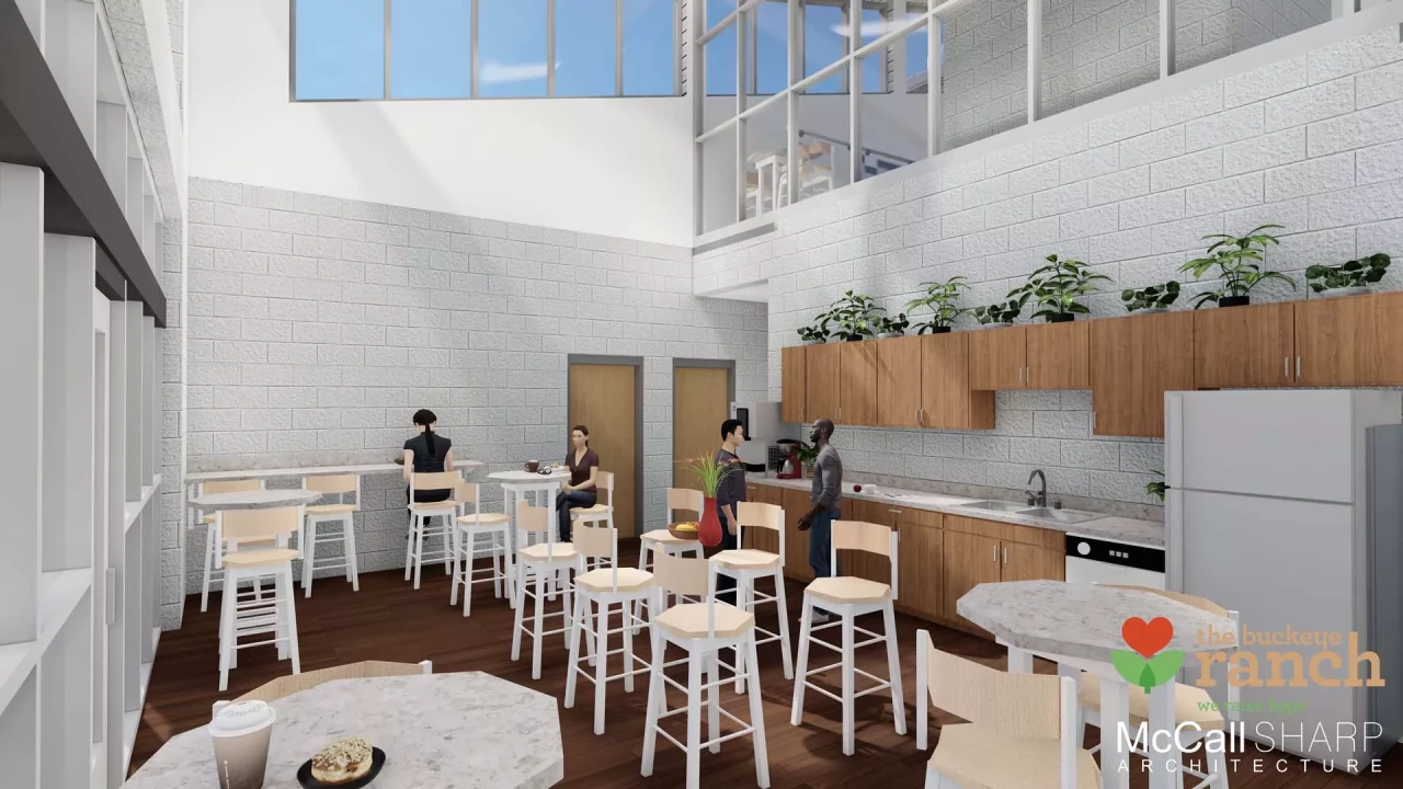 In addition to the new construction, two other campus buildings will be renovated. First, the current 7,300± SF kitchen/cafeteria building will be completely renovated, allowing the dining area to also serve as an activity space for performances and other assembly functions. Second, a 4,500± SF gymnasium will be renovated and expanded into a 12,000 SF educational center, providing eight classrooms, a library, multi-purpose space along, and offices for the Ranch’s long-standing partner, Southwest City Schools.