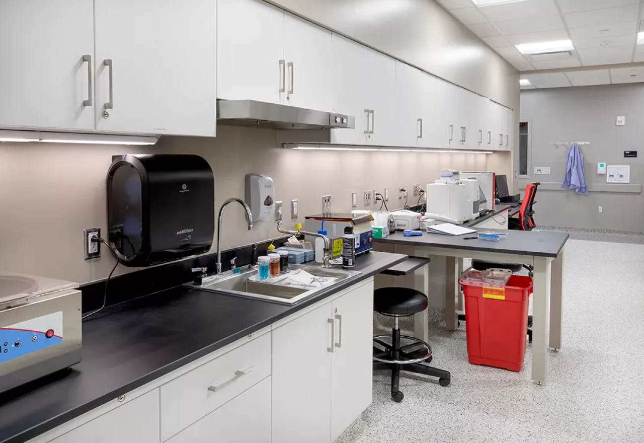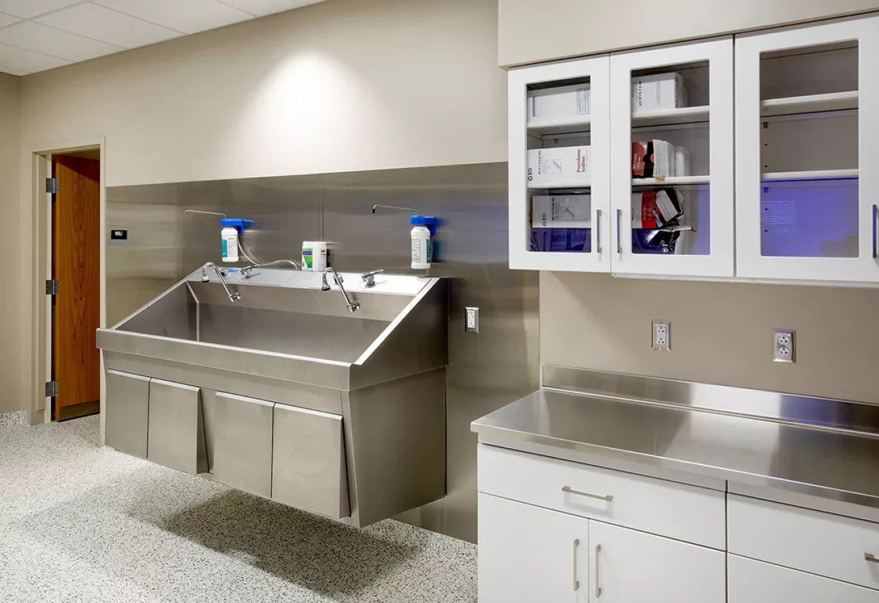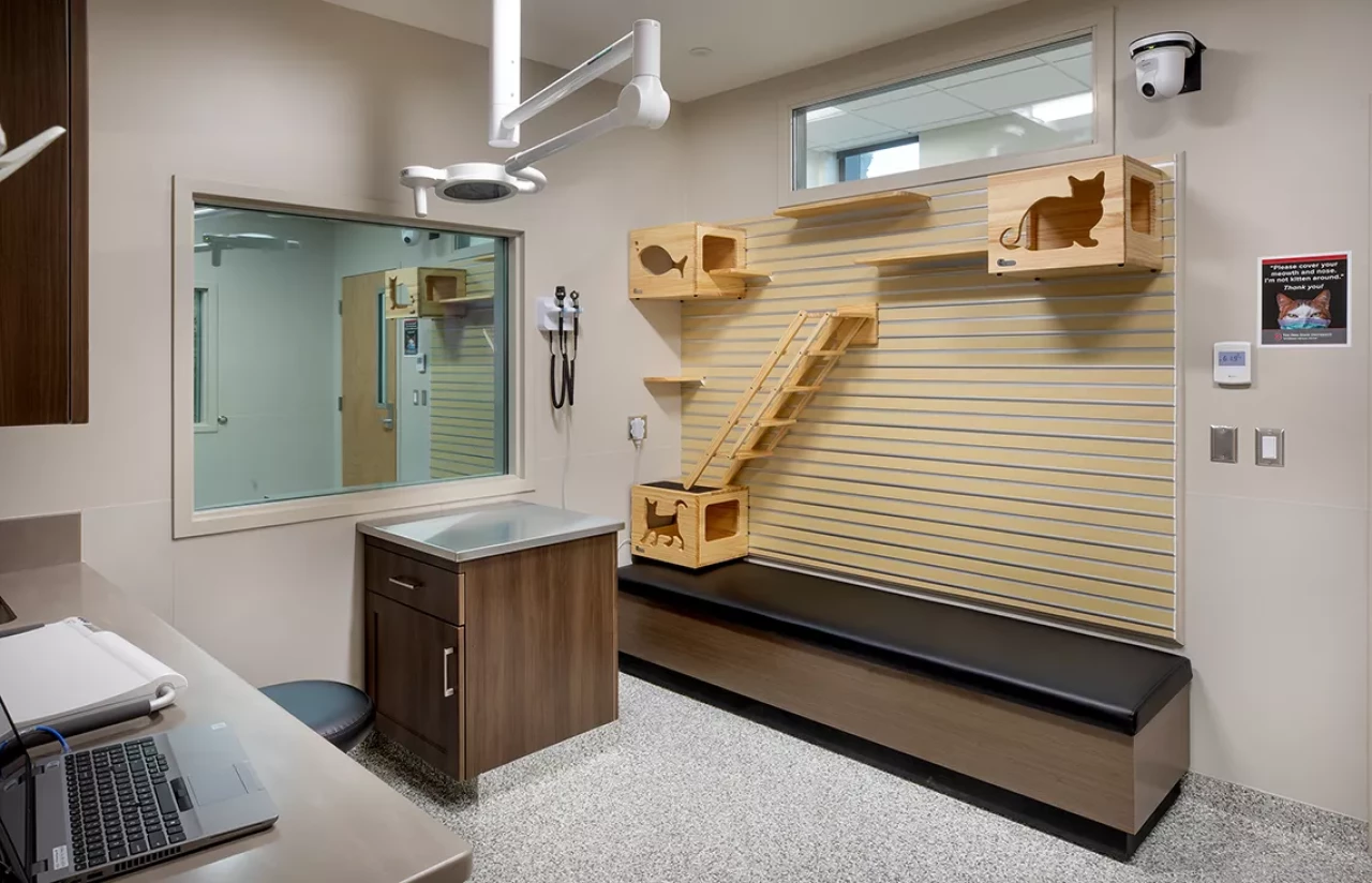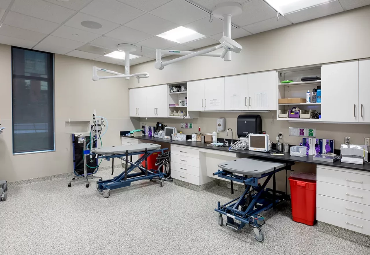 The scope of this project included a new two-story, 35,000 SF Spectrum of Care Clinic. The first floor includes a lobby and reception area, exam rooms, treatment stations, small animal wards, dentistry, surgery, two garage bays, a loading dock, and exterior dog run. The second floor includes a conference room, offices, break room, mechanical room, and 9,500 SF of shell space. The shell space will be renovated as a separate project in the future.