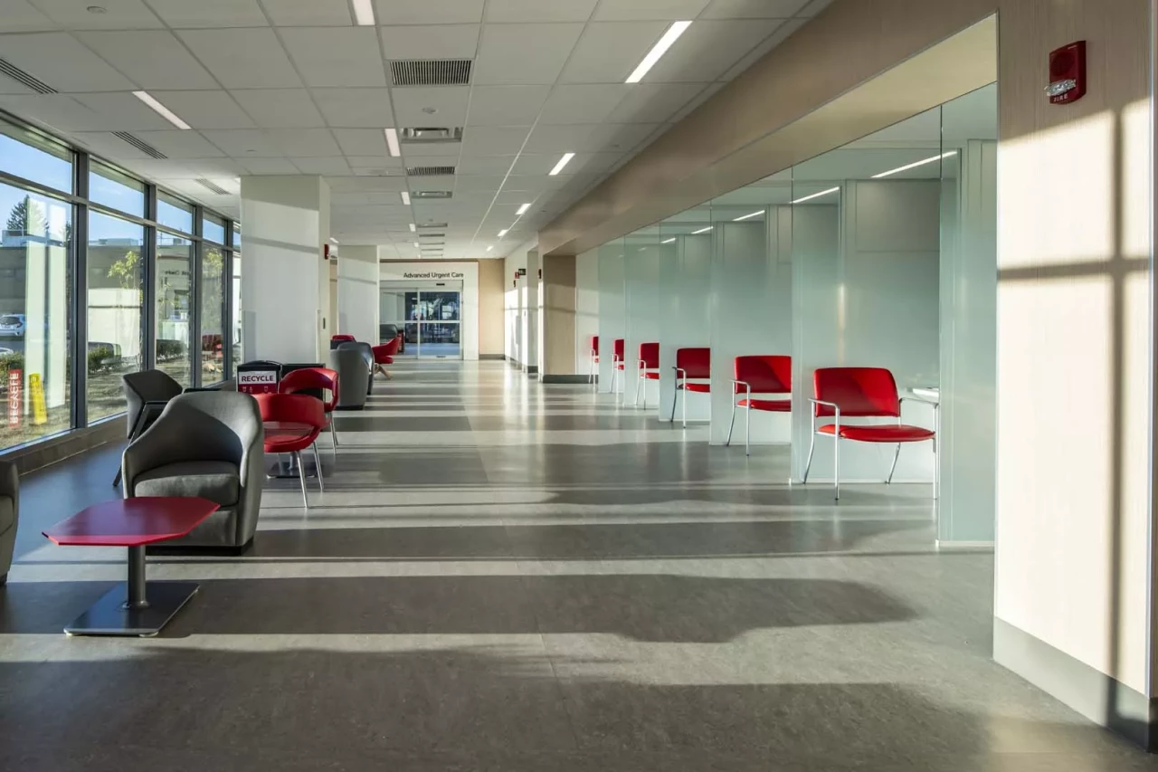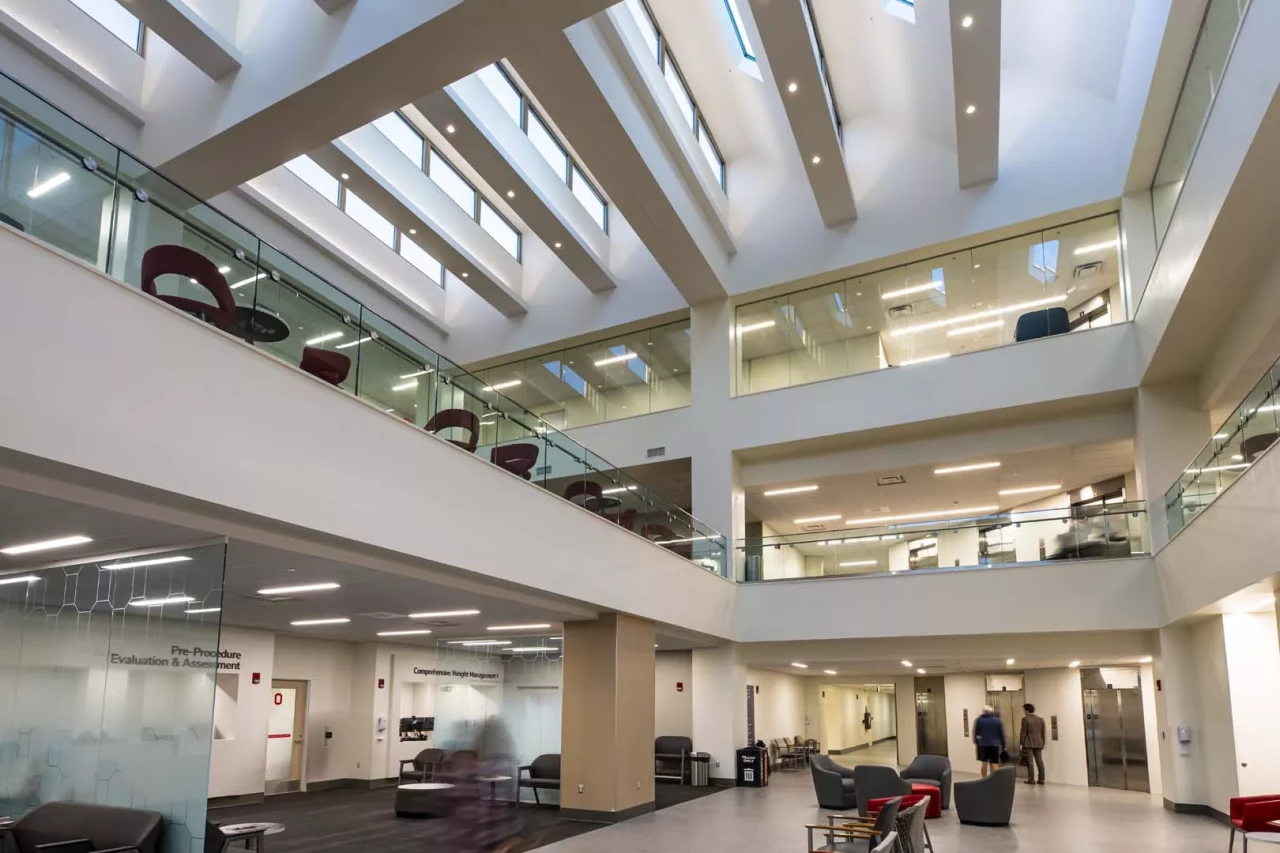 This project constructed a 7,000 SF addition to the north and west, expanding registration, laboratory spaces and waiting areas. The renovation scope included 105,000 SF of existing space including Pulmonary Rehabilitation, Urgent Care, OPAC, Comprehensive Weight Management, food service, patient drop-off/pick-up canopy, and add an elevator.