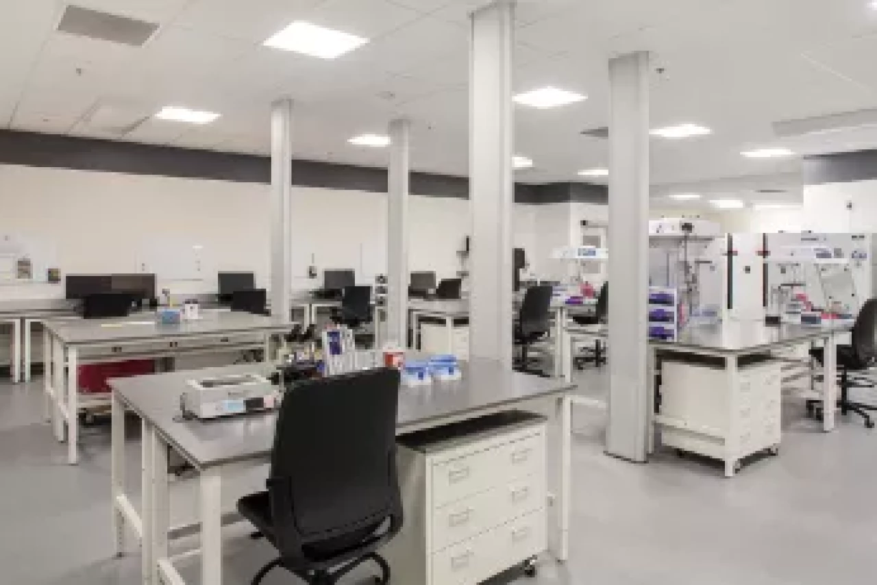 The project consists of 2 existing floors and approximately 33,050 SF of renovation work, which consist of different levels of renovation. Approximately 3,200 SF will include removal and installation of new carpet and patching and painting walls. Remaining spaces include demolition and replacement of mechanical and electrical equipment. Construction of an aluminum canopy and modifications to a storefront for a new exit. Construction of interior drywall partitions, wood doors with HM frames and hardware, aluminum doors and storefronts. New glass and glazing, architectural woodwork, casework, acoustic ceilings, carpet, vinyl flooring and base, accessories and furnishings, plumbing fixtures, fire protection, HVAC, electrical service and elevator service.