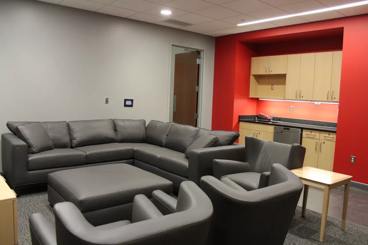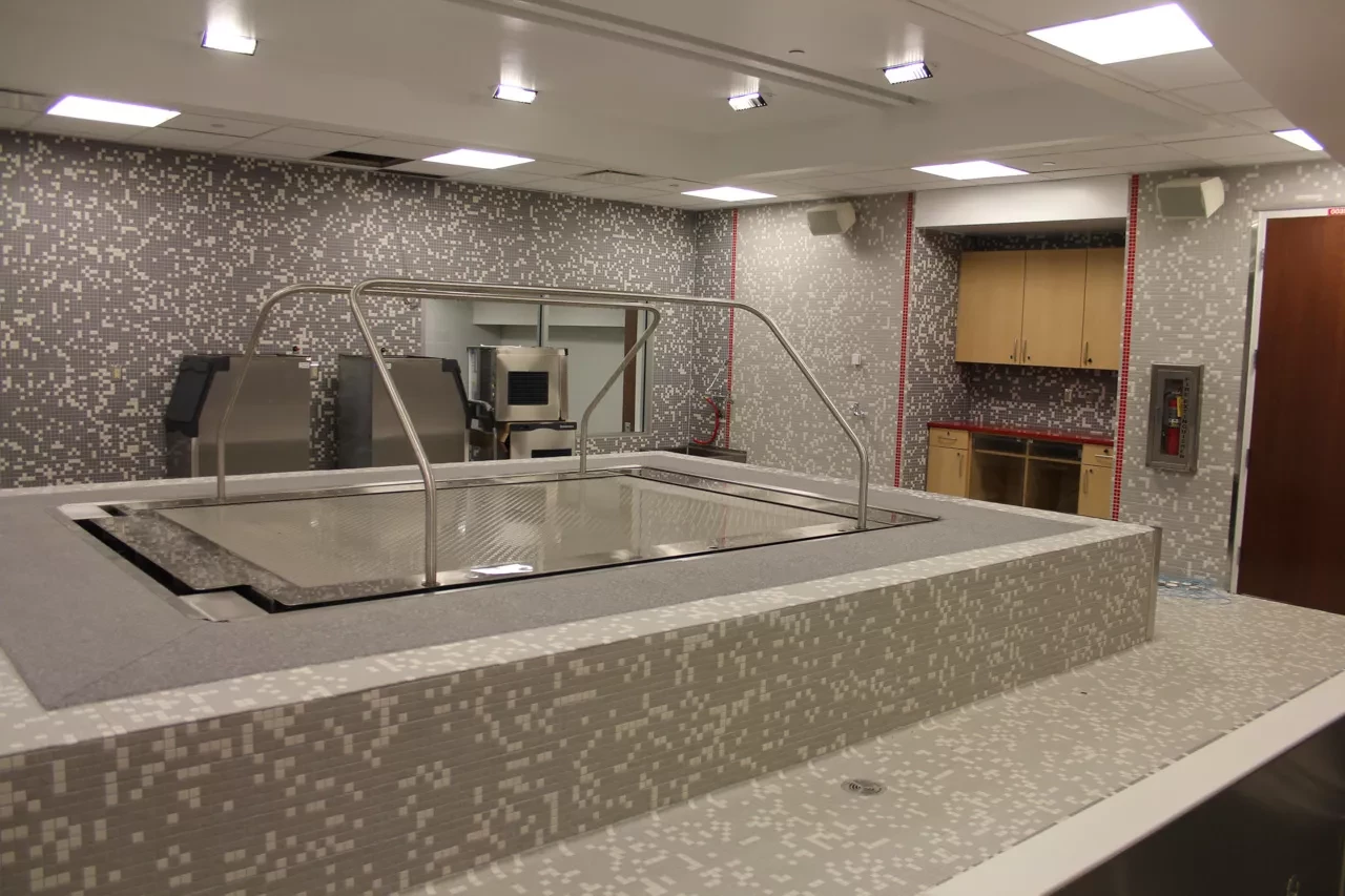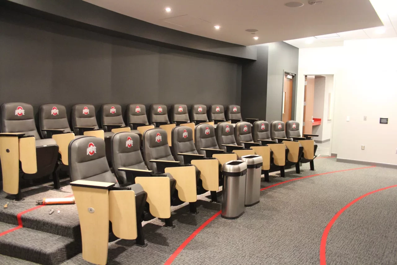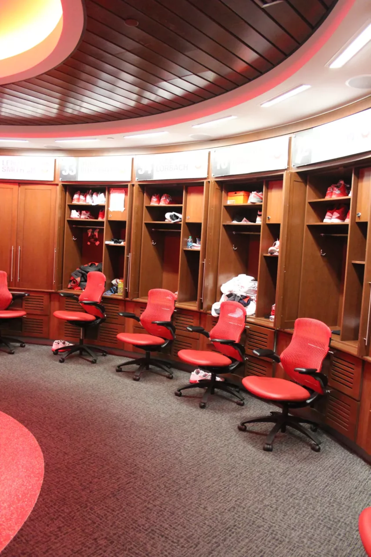 Practice Facility at the Schottenstein Center. Renovations included existing locker rooms, treatment room, weight rooms, film room, player’s lounge, and a new Hydroworx therapy pool. New work included high-end finishes and a custom millwork package for players lockers and lounge areas. The project also included demolition in existing areas followed by installation of new walls, floors, and acoustical ceilings. An extensive MEP renovation was performed throughout modifying the Plumbing, HVAC, and Electrical to fit the plans.