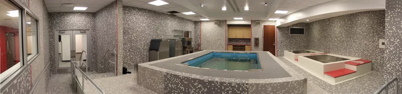 Renovations included existing locker rooms, treatment room, weight rooms, film room, player’s lounge, and a new Hydroworx therapy pool.