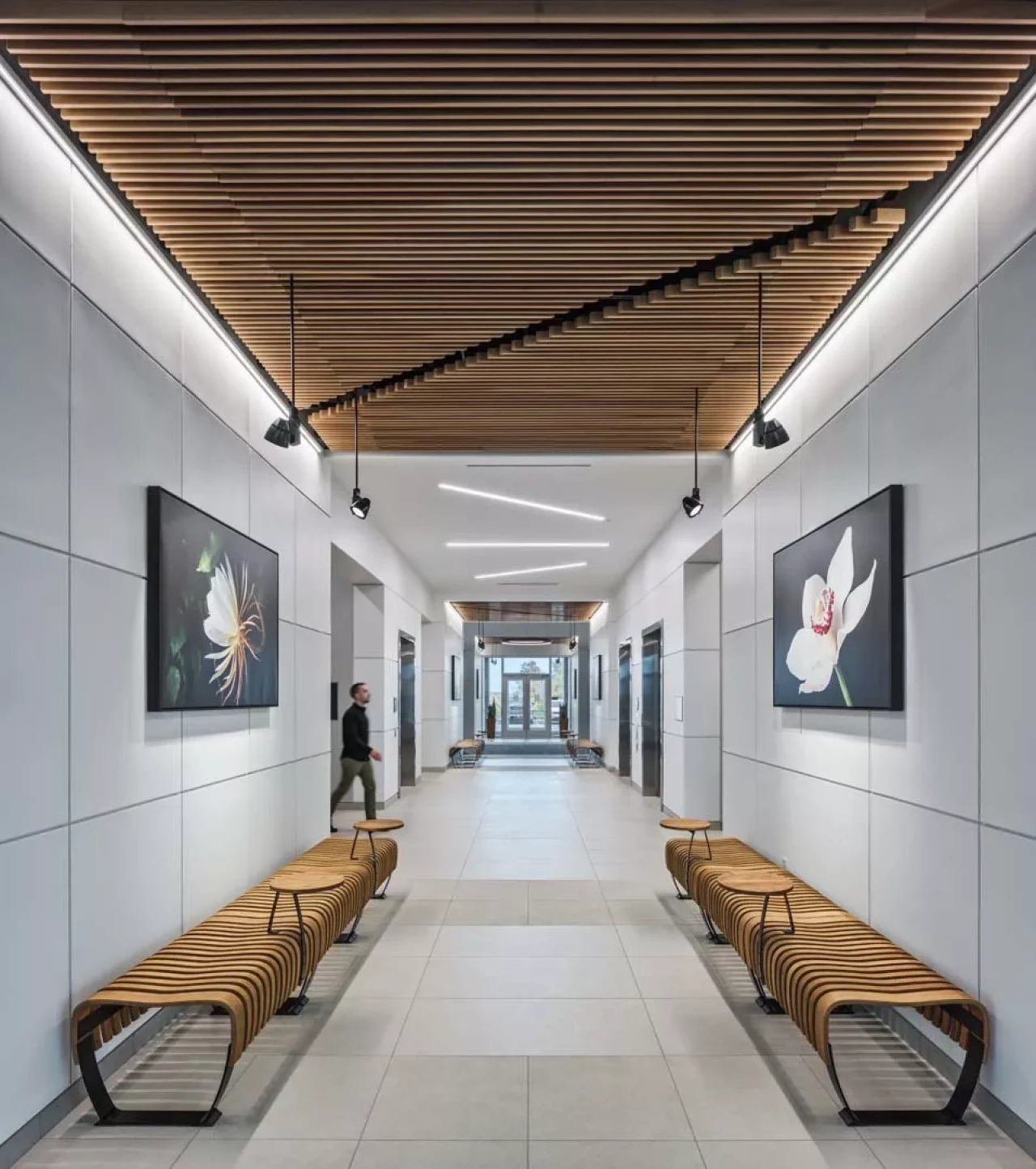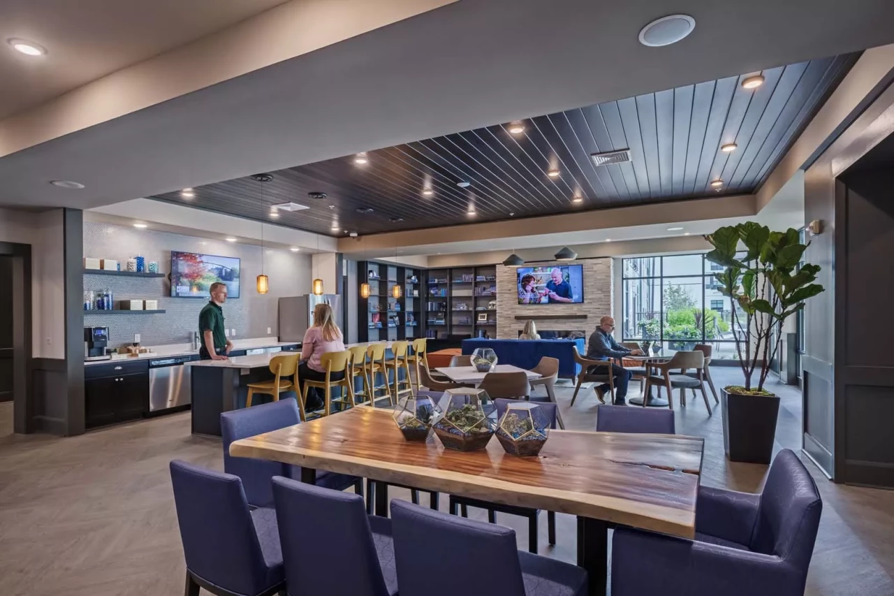 In Phase 2, an additional 150,000 SF office building that included tenant improvement of the 4th and 5th floors of the Bank of America Office, 267-unit apartment building, and 458-space parking garage were constructed adjacent to the fully operational phase 1 of the development. The team was able to successfully coordinate construction activities to ensure minimal disruption to the neighboring office, apartment, and retail tenants. Amenity spaces for apartment residents in both buildings included a community room, lap pool, indoor and outdoor fitness center, bike storage and repair stations, outdoor grills and fire pits, and hammocks.